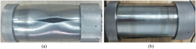 The rocket motor case simulation with a 3 mm thickness of the Sn9Zn-0.8Al0·2La alloy has a burst pressure of 19.88 MPa, and the rocket motor case simulation with a 3 mm thickness of the Sn9Zn–3Al0·2La alloy has a burst pressure of 21.21 MPa. The temperature of the fusible alloy diaphragm for Sn9Zn–3Al0·2La and Sn9Zn-0.8Al0·2La were 161.3 °C and 162 °C respectively when they broke. The diaphragm and the rocket motor case simulation after the hydrostatic pressure in the high-temperature test are shown in